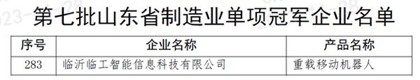 近日,山東省工業(yè)和信息化廳公布了第七批山東省制造業(yè)單項(xiàng)冠軍企業(yè)名單,臨沂臨工智能信息科技有限公司成功入選,此次單項(xiàng)冠軍企業(yè)入選,是對(duì)臨工智科在行業(yè)地位、品牌價(jià)值及企業(yè)綜合雄厚實(shí)力方面的充分肯定和高度認(rèn)可。